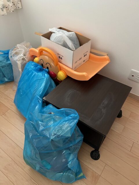 今回は子供用滑り台、子供用キッチン、熱帯魚を置いていた台(カビてしまった)、壊れた椅子の4点を持ち込みました。